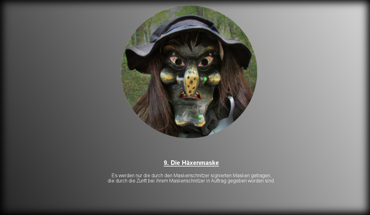 Die Gedanken bezüglich der Häxen-Maske äußerten den Wunsch der Einzigartigkeit und dennoch mit Einfluss der Elzacher Schuttig, welche den damaligen Häxen-Mitglieder besonders gefiel. Somit suchte man einen Maskenschnitzer in Elzach auf, welcher zusammen mit den Mitgliedern die Häxen-Maske in vielen Stunden entwarf. Das Ergebnis war einzigartig und genial. Der Einfluss der Schuttig ist nur bei genauer Begutachtung der Maske erkennbar. Übrigens... der Maskenschnitzer ist bis heute der Schöpfer unserer Masken.